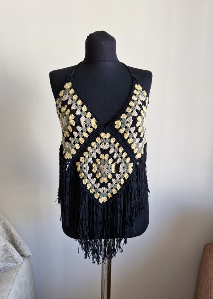 Yeni cotton ip ile örülmüştur saçak detaylı bustiyer