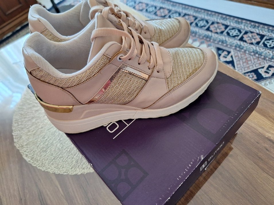 pudra renkte bağcıklı kadın spor ayakkabısı, dolgu topuklu ve kauçuk tabanlıdır. Günlük kullanıma uygun rahat birkaç kez giyildi flodan almıştım 37 numara
