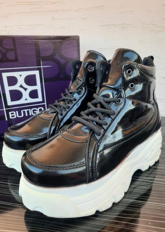 Butigo Siyah Rugan Platform Topuklu Kadın Spor Ayakkabı