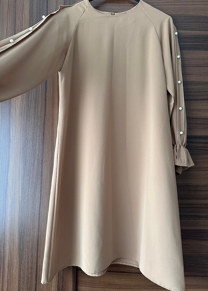 Hardal renginde arkası fermuarlı sade şık kusursuz tunik