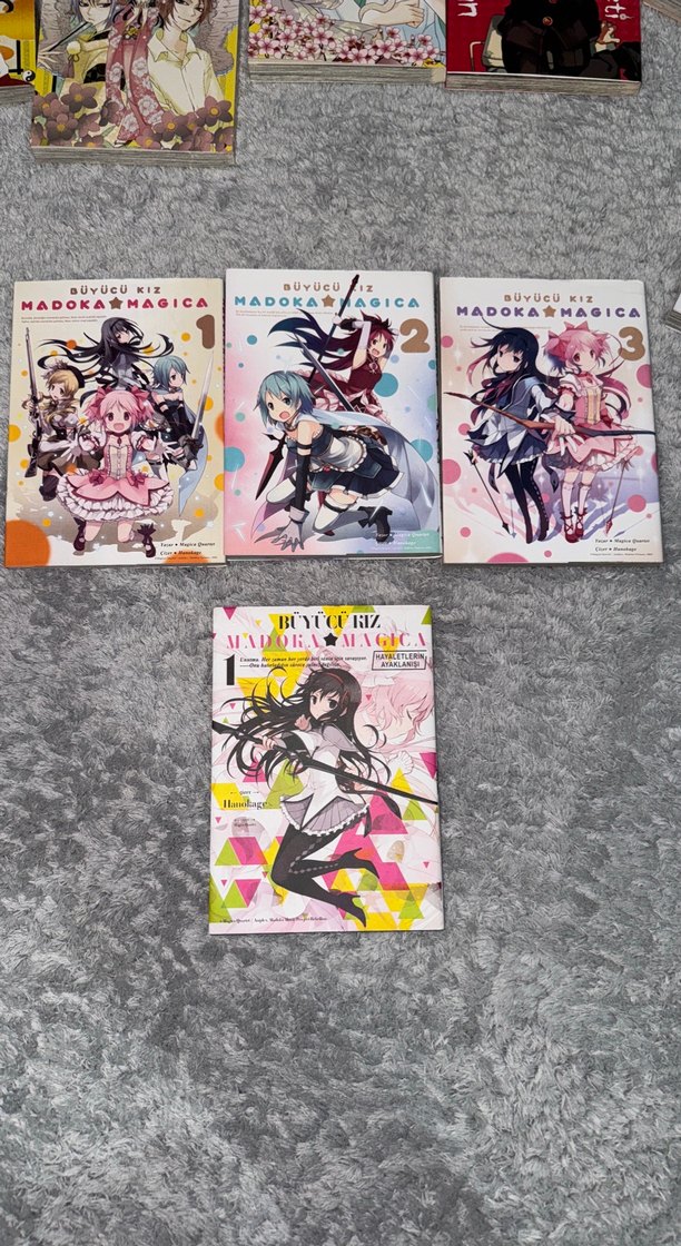 ÜRÜN TEMİZ VE SAĞLAM Büyücü Kız Madoka Magica serisinin dört ciltlik manga seti. Her cilt farklı kapak tasarımlarıyla büyücü kız karakterlerini içerir.