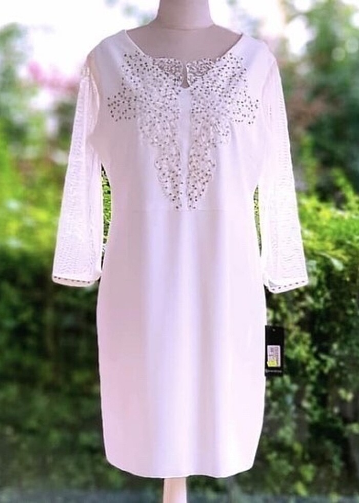 Büyük beden beyaz elbisesi