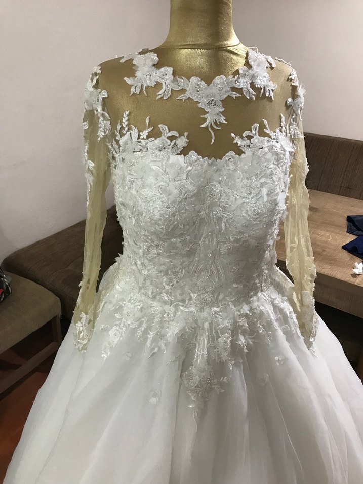 Büyük beden Dantel Detaylı Uzun Kollu A kesim Gelinlik