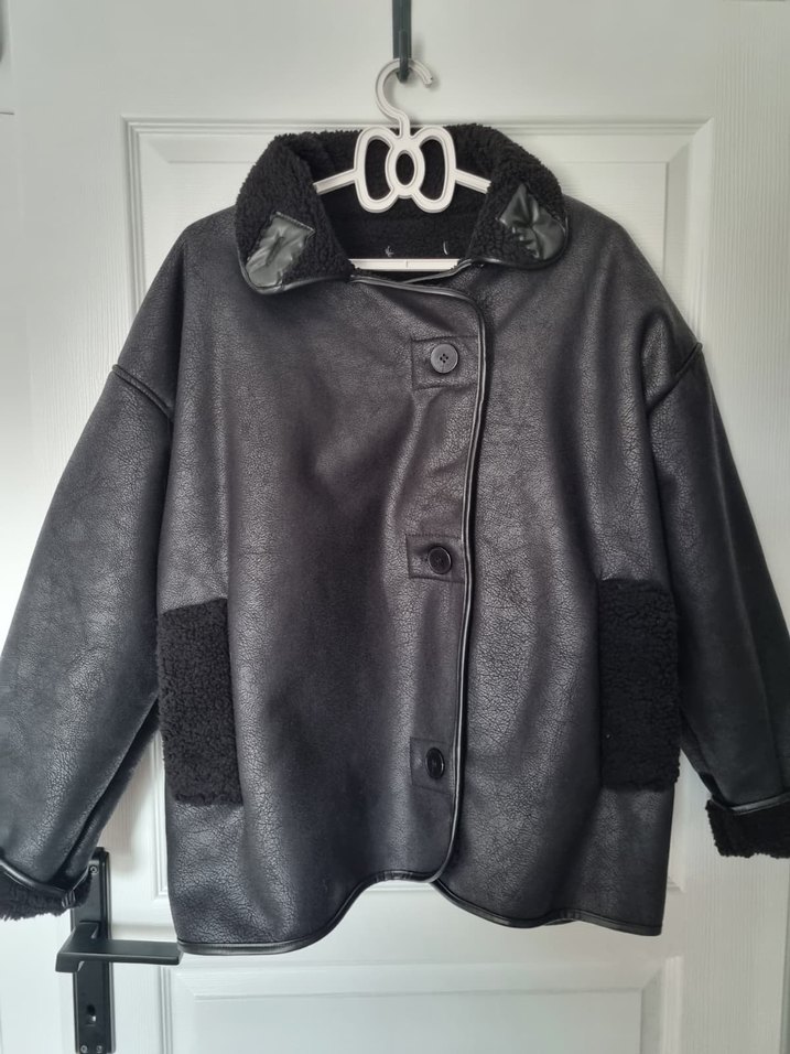 Düğmeli, siyah deri, notlu yaka, uzun kollu ve büyük bedenler için uygun. Etiketi koparıldı ancak hiç giyilmedi, 1800e aldım daha uyguna bırakıyorum direkt bu ilanı alabilirsiniz. Hiçbir defosu yok.