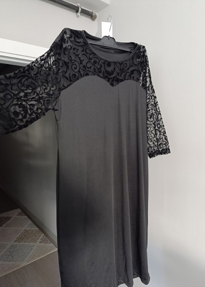 Omuz ve kol detayları tül öpücük yaka 1.62 boyda diz altı özel günlerin çok şık parçası çok geniş 46-48 bedene uyar