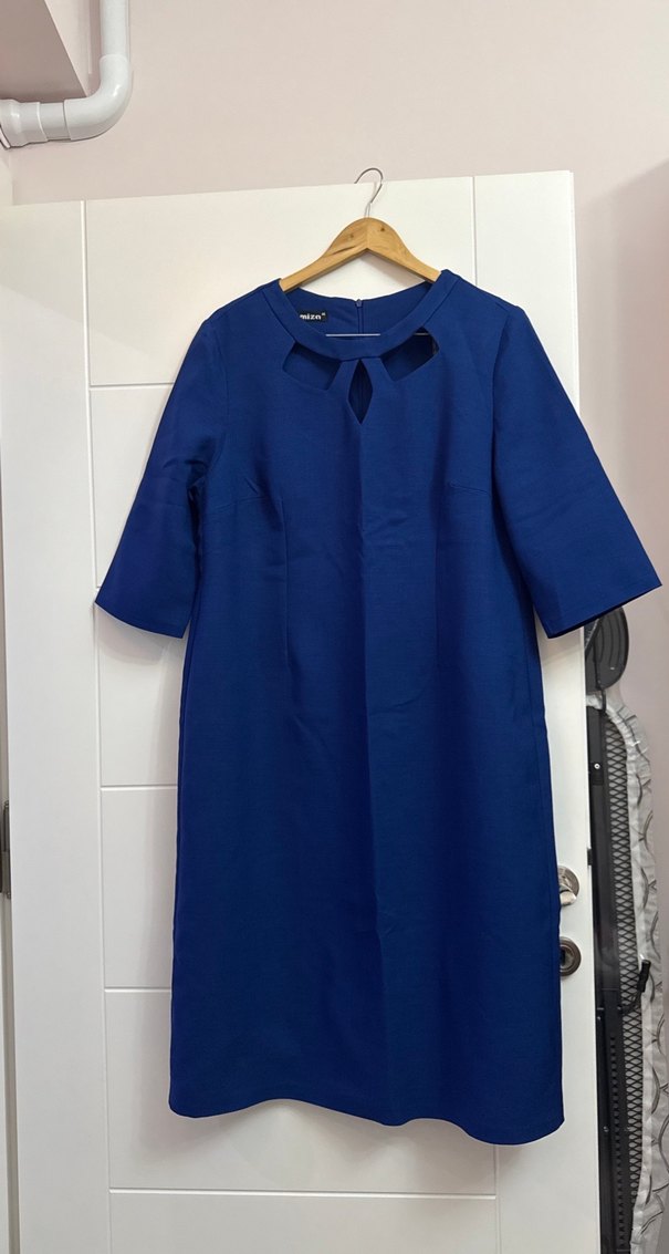 BÜYÜK BEDEN ELBİSE Lacivert Midi Keten Elbise