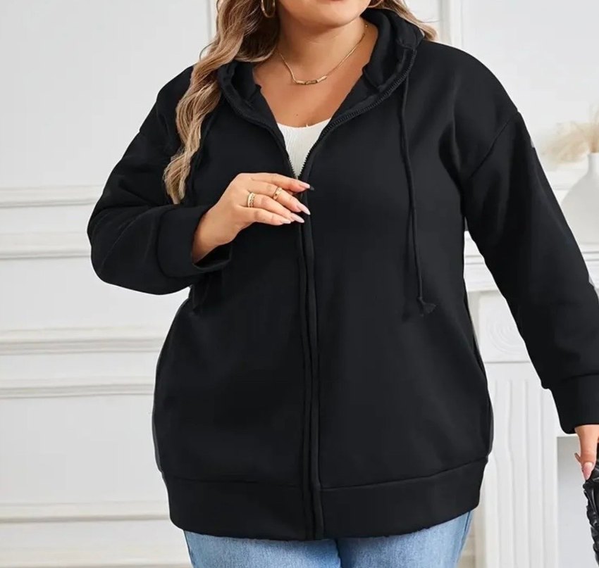 Büyük beden esnek kumaş 3 iplik siyah fermuarlı hırka