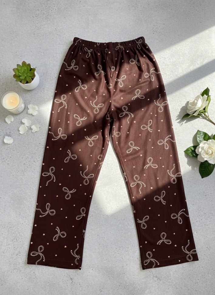 Büyük beden fiyonk Detaylı Kahverengi Pijama