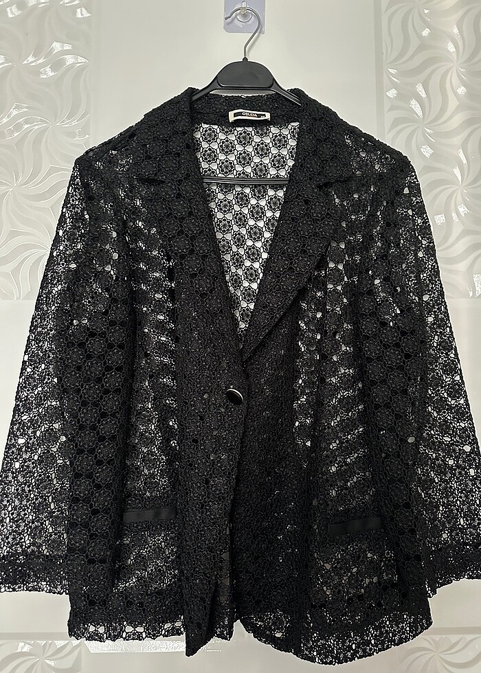 Hiç giyilmemiş Önde tek çıtçıtlı uzun kollu güpür delikli yazlık ceket En 55 cm Boy 68 cm
