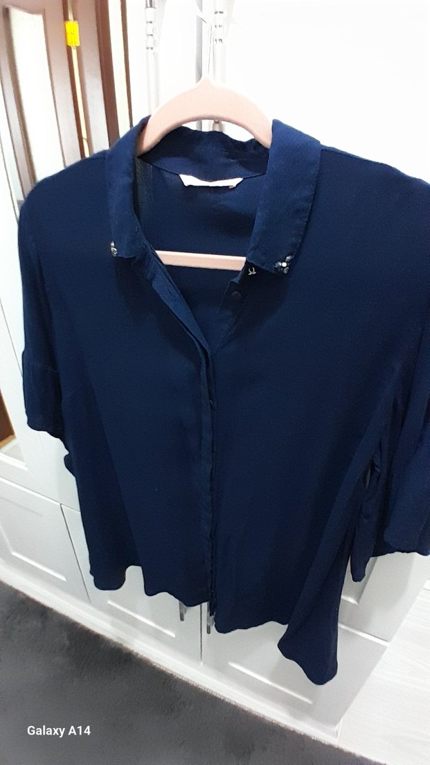 Düğmeli, yakalı ve kısa kollu, bol kesim kadın gömleği. viskoz kumaştan, gunluk ve, ofis kullanımı için uygun.1 kez giyildi