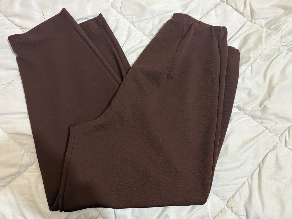 Kahverengi, ipeksi dokulu kadın balon pantalon, normal kesim rahat tarzdadır. Bilek boyda, ofis ve günlük hayat için uygundur. 1 kez giyildi.