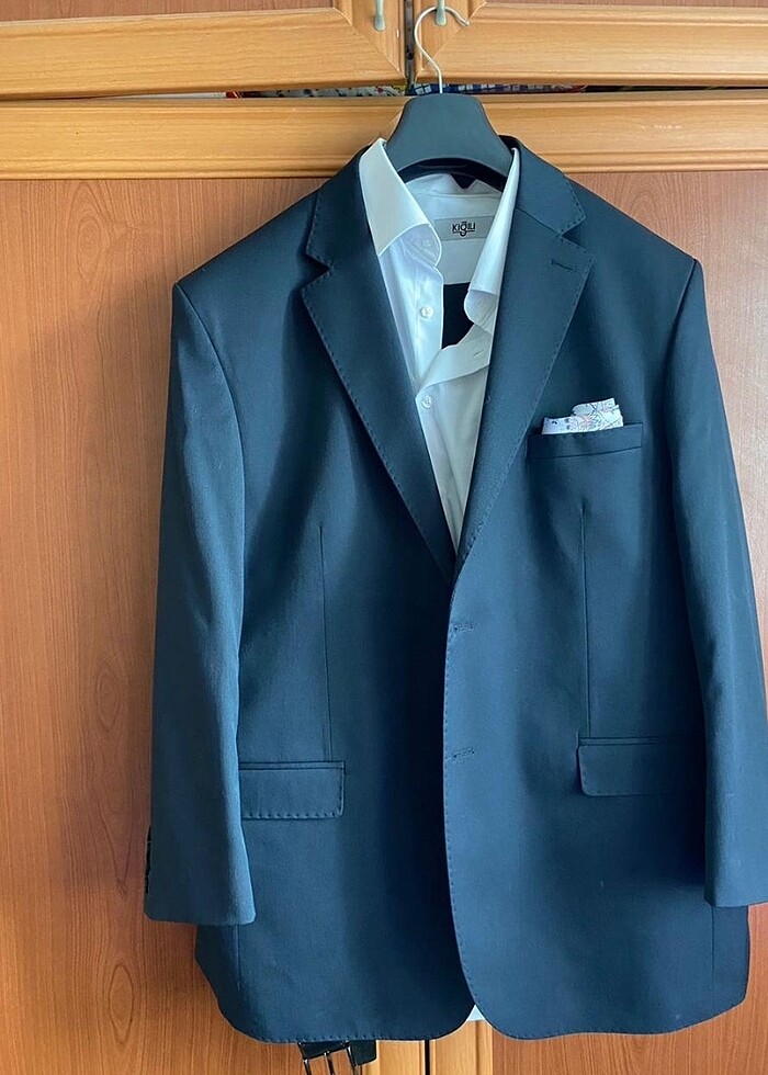 Beden 60/4 lacivert takım elbise 1 kez giyildi tertemiz. 106 kilo 170cm boy giyildi. Ceket gömlek pantolon ve mendili var. Mendil isteğe bağlı çıkarılabilir. Fotoğrafta ışıktan dolayı siyah gibi çıkmış ama takım laciverttir.