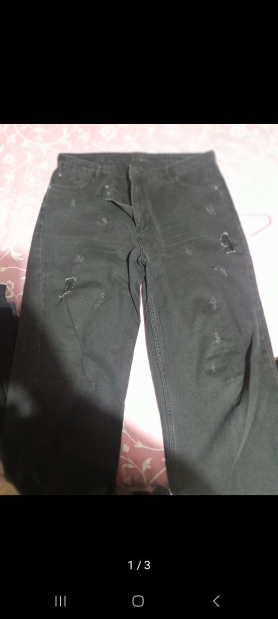 Denim kumaştan yapılmış, yırtık detaylı siyah bol kesimi jean. Grunge punk tarzını yansıtan rahat ve günlük kullanıma uygun bir model.