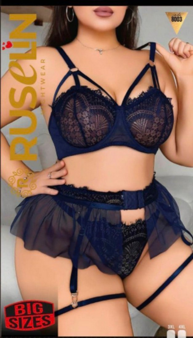 Büyük Beden Lacivert İşlemeli Dantelli Gecelik Takım