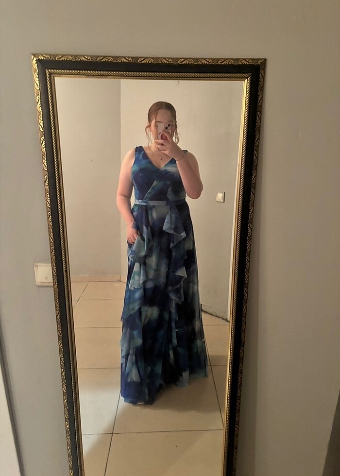 Yazlık şifon büyük beden abiye elbise bir kere kullanıldı hiçbir tadilati yok