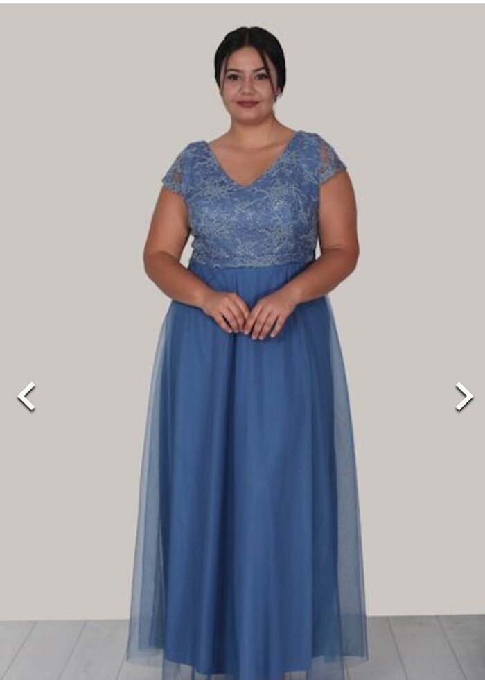 Büyük beden mavi tüllü abiye