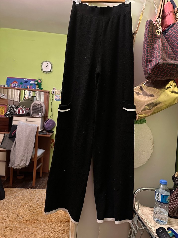 Büyük beden örgü kumaştan siyah pantolon