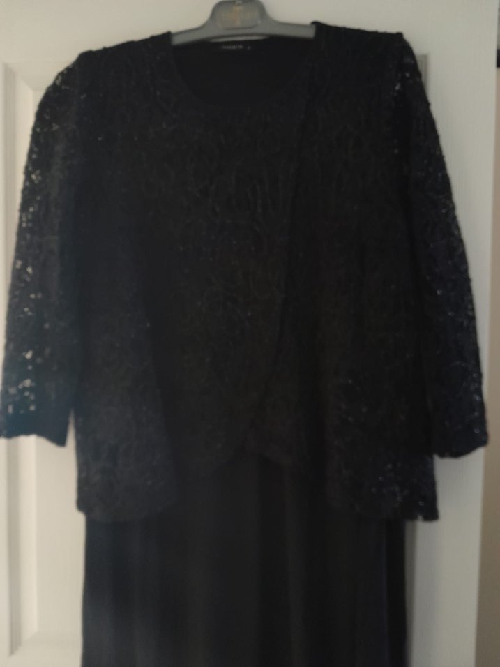 Siyah, uzun kollu dantel detaylı, bol kesim gece elbisesi. Klasik zarafeti yansıtan gotik tarzda, ofis için uygun.