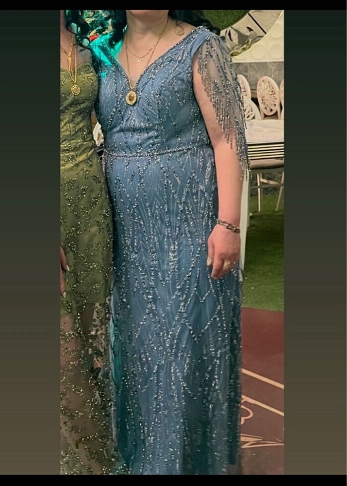 sadece 2 kere giyildi. yepyeni hiçbir şeyi yok. kolları çıkarıldı geri dikilebilir. bursa çarşıdan almıştık bunun çok daha yüksel fiyatına. teklif kabul etmiyorum. 48 bedendir. annem 162 boy 82 kiloda giydi. #abiye #elbise #davet #büyükbeden