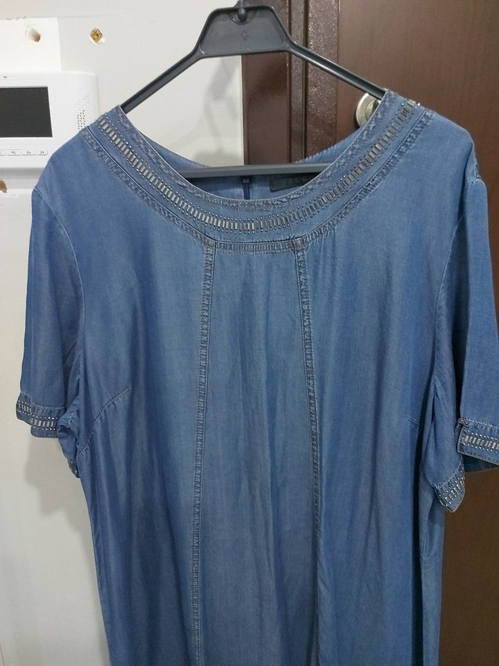 İndigo renkli %100 Tencel Kot elbise, tam yazlık tiril tiril spor dikişli. Hiç giyilmedi sıfır üründür. Boy:119 cm Koltuk altı genişliği 64 cm Manken üzerinde duruş resmini de görsellere ekledim SELEN MARKA