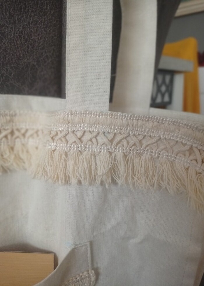 40x46 cm çok geniş ekru püskül detaylı plaj cantasi