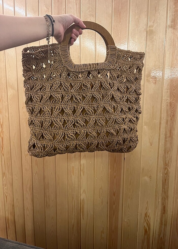 Kâğıt ip ile örülmüş. Büyük boy el çantası içi astarlı