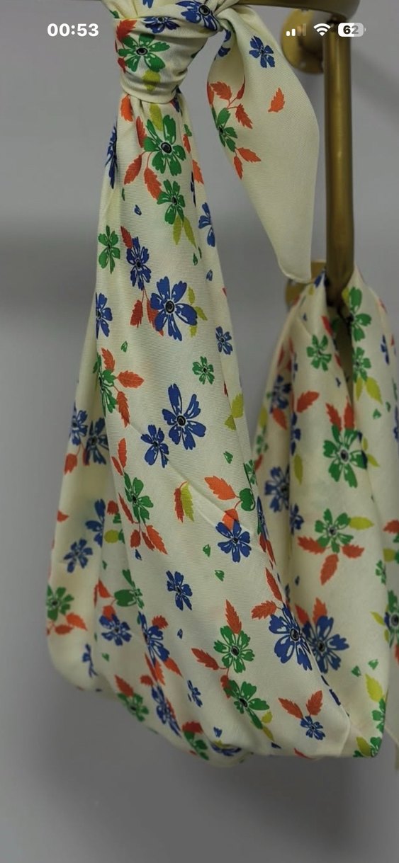 Hafif renkli, sentetik kumaştan yapılmış, çiçek desenli ve drapeli bohem kadın şalı. Retro ve hippie tarzını yansıtır.
