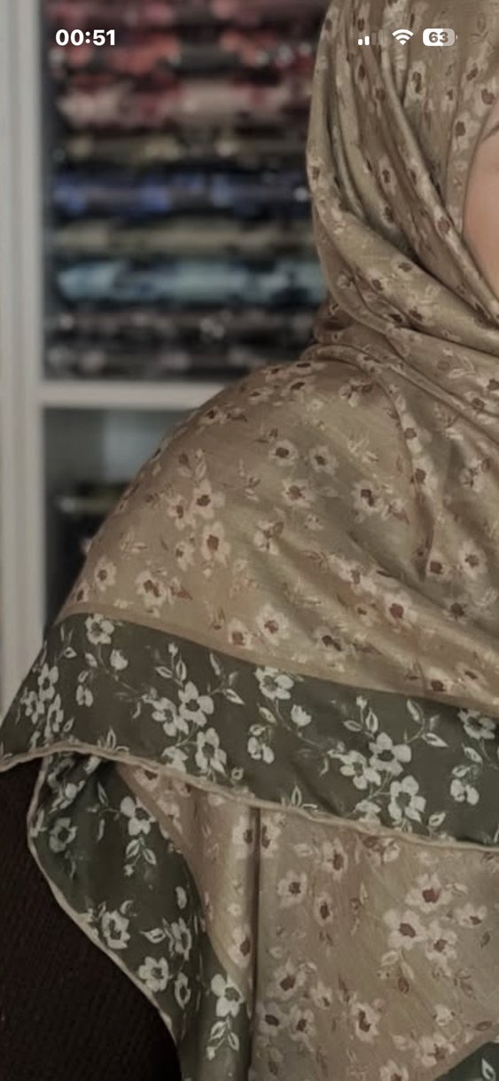 Kadın bej ve gri çiçek desenleriyle drapeli tasarıma sahip, yumuşak sentetik kumaştan yapılmış mütevazı bohem tarzda.