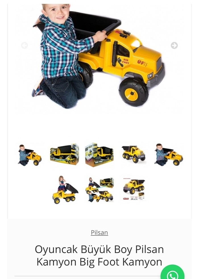Büyük boy oyuncak kamyon. Hiçbir sıkıntısı yok. Sapasağlam. Dolabın üstünde oldugu için indiremedim. İsteyene resim atarım. Yerim olmadığı için satıyorum. Nette 1100 tl