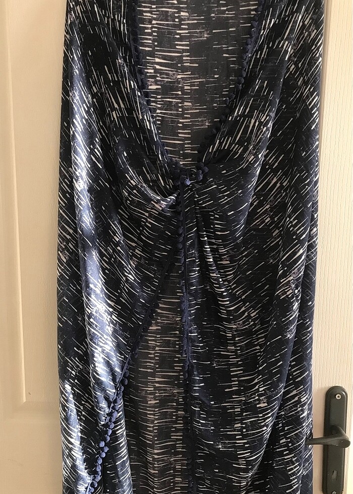 Yurtdışından bir Marks & Spencer mağazasından alındı. Ölçüleri 110x150 cm. Uzun elbise olarak kullanılacak kadar büyük. Kombin yapamadığım için hiç kullanılmadı.