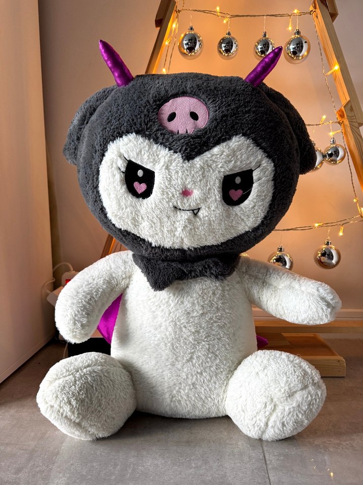 60 cm yumuşak tüylü kanatlı Kuromi oyuncak. Çocuk için harika bir yılbaşı hediyesi. Çok iyi durumda yeni gibi.