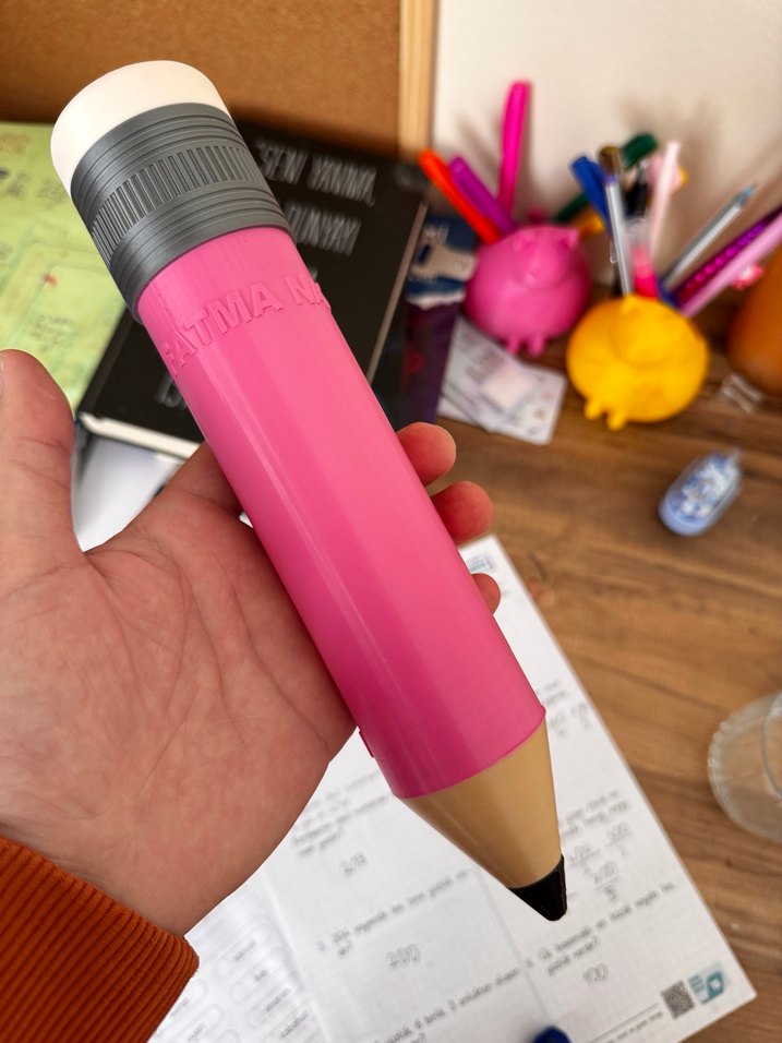 Yumuşak üst silgili, kalem şeklinde büyük boy pembe silgi.