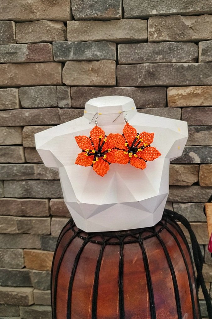 renkli boncuklarla yapılmış büyük çiçek desenli küpeler, günlük kullanım için bohem tarzda. Adet fiyatıdır.