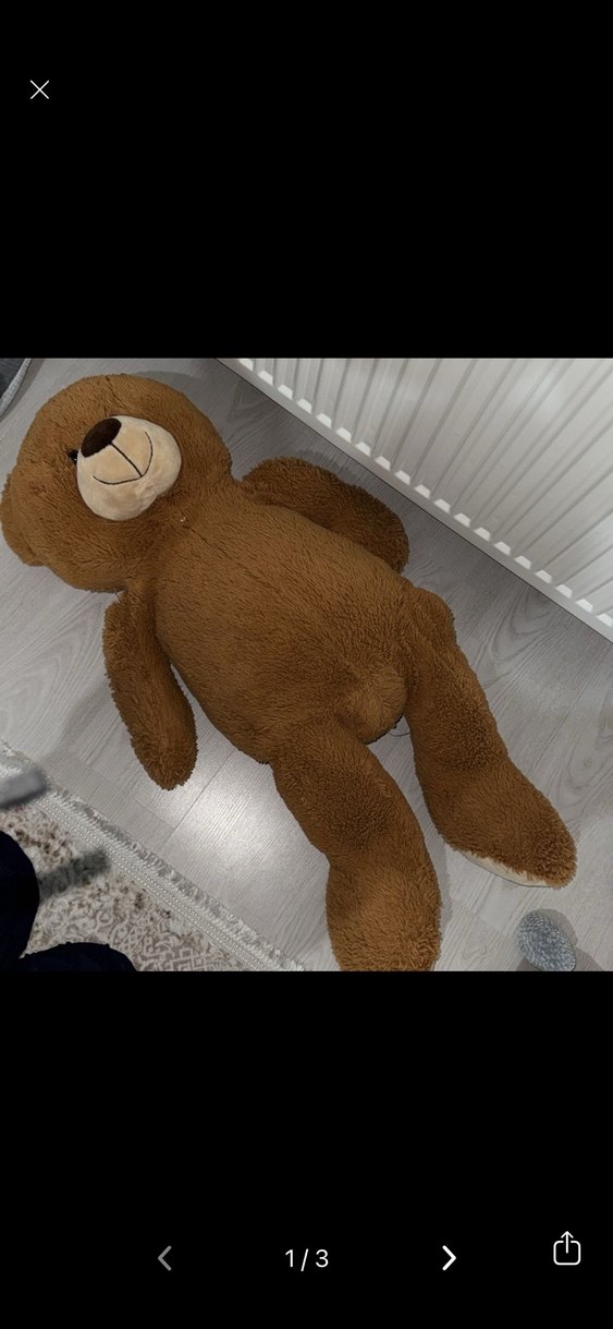 Büyük kahverengi peluş ayı oyuncak, yumuşak kumaş ve sevimli yüz ifadesiyle sarılmak için ideal. 100 cm uzunluğu