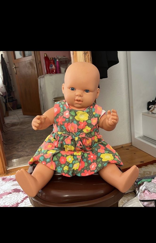Büyük boy et bebektir.konuşma ve hikaye anlatma özelliği vardır,çalışıyor.elbisesi ile görseldeki gibi gönderim sağlanacaktır.çocuklar çok sevşyor bizim çocuk büyüdü o yüzden satıyoruz