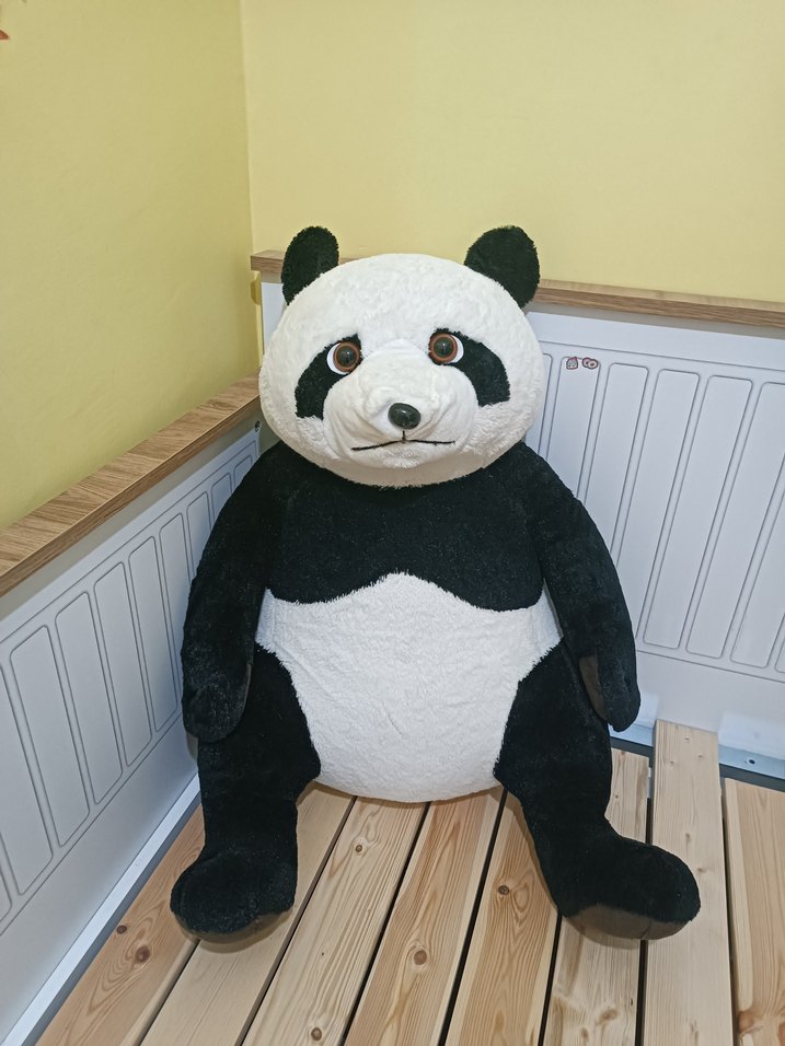 Yumuşak ve kabarık dokulu büyük siyah beyaz panda peluş oyuncak, sarılmak ve dekorasyon için uygundur. Bazı yerlerinde hafif kir olabilir, çocuklar oynuyordu ama alerjileri varmış, o yüzden satmak zorunda kaldık şu an.. #peluş #panda
