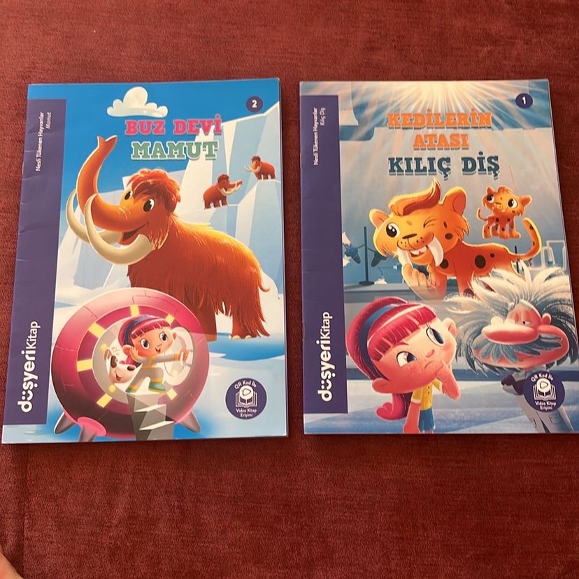 Yünlü mamut ve kılıç dişli kedilerin atası hakkında macera dolu iki çocuk kitabı. Canlı çizimler tarih öncesini canlandırıyor. 1.2.sınıfa uygun okuma kitabı isteyen dolabımdaki diger kitaplarada bakabilir. Fiat 2li alım içindir. Tekli alımda adeti80 tl