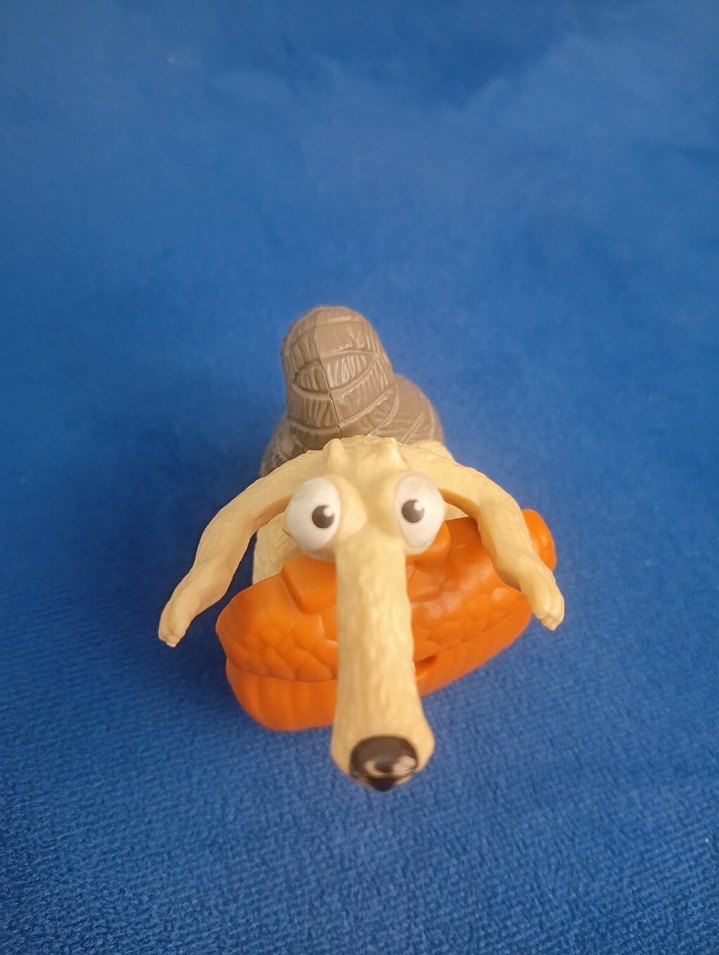 Büyük gözlü, deve renkli ve canlı detaylara sahip renkli aksiyon figürü.