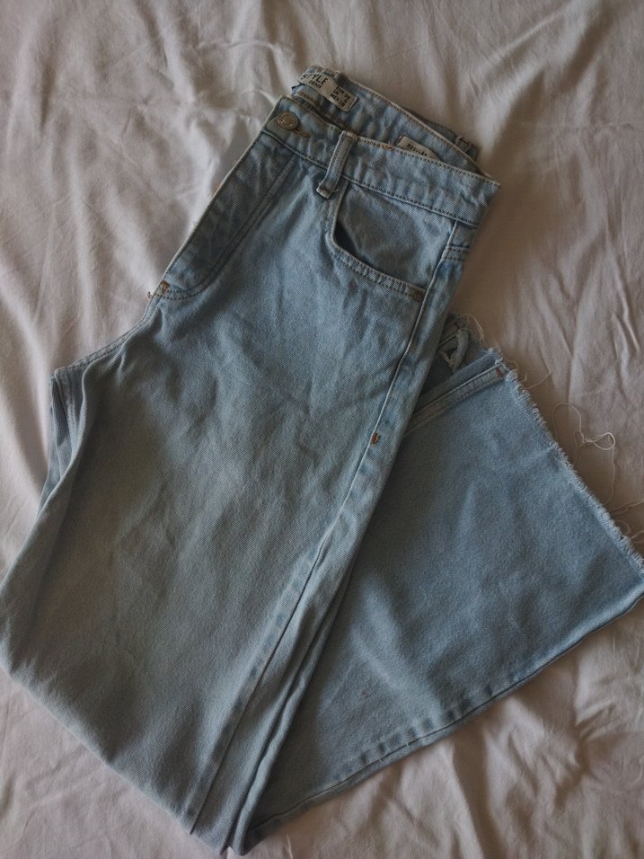 Buz mavi renk, yüksel bel bol kesim kot pantolon. Addax/38 beden