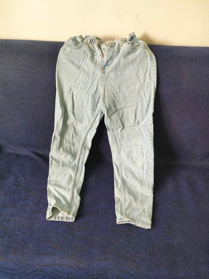 Bol kesim buz mavisi denim kot, zahmetsiz şıklık sunar. Desensiz ve rahat bir görünüme sahiptir.
