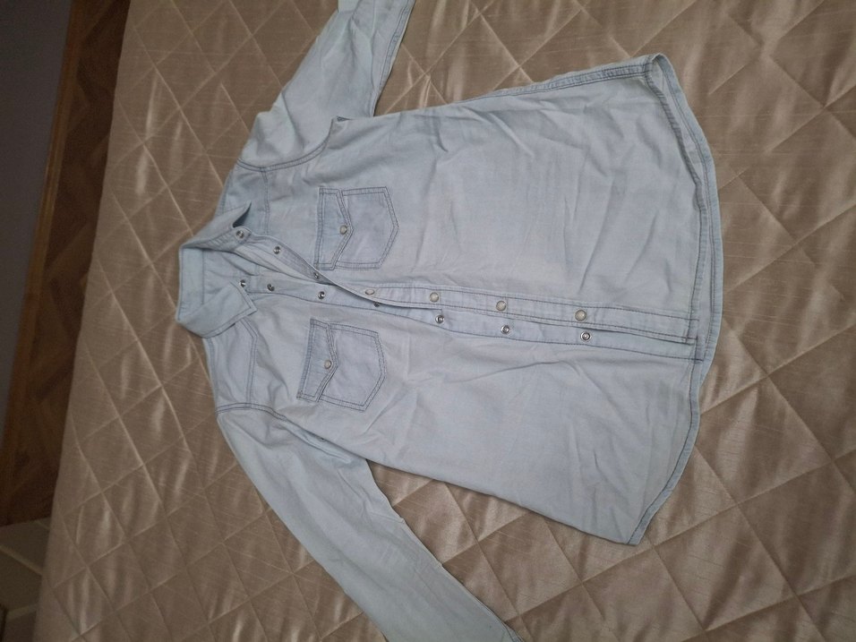 buz mavisi renkli, düğmeli ve yakalı kesime sahip, uzun kollu, normal midi uzunlukta, fitted kesim denim gömlek. Casual sokak stiline uygun.