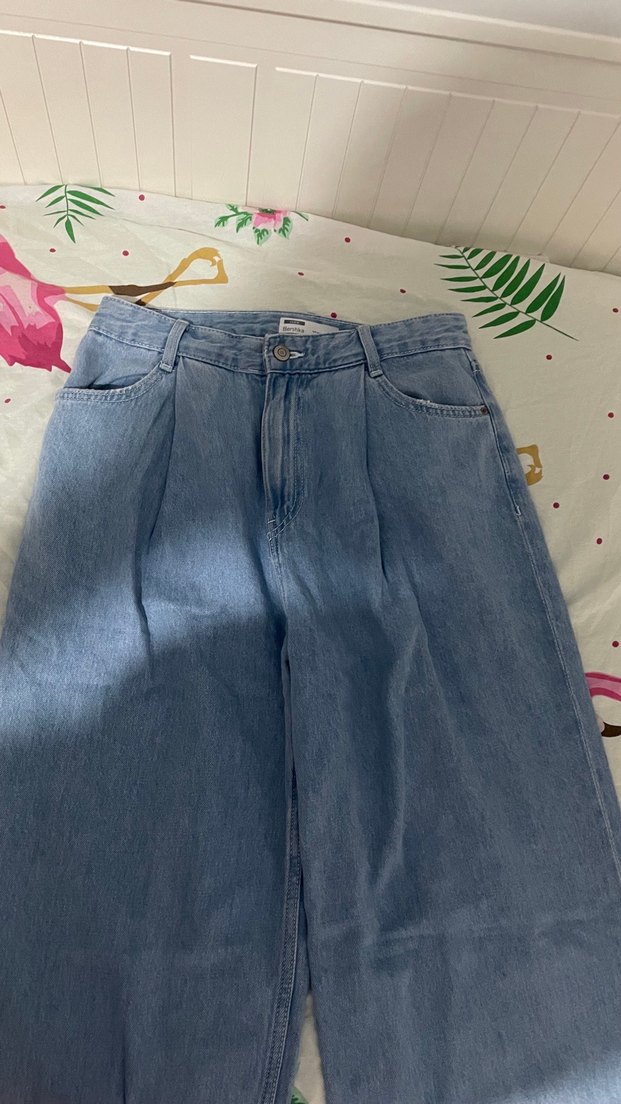 Mavi, normal boy midi uzunluğunda, bol kesim denim pantolon. Günlük rahat kullanıma uygun, pastel tonlarda, desensiz tarzda.