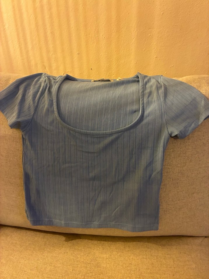 Buz mavisi jarse Kısa Kollu Kare yaka crop bluz