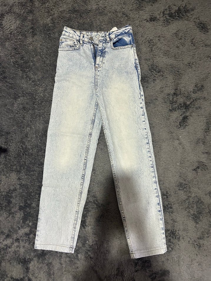 Buz mavisi mom jeans az ve temiz kullanılmış defosu yoktur gündelik kullanım için şık ve rahat bir parçadır