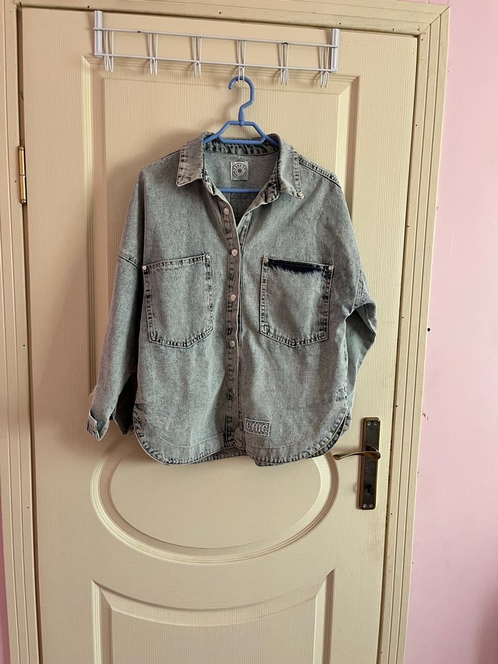 kadın denim ceketi, uzun kollu ve salaş kesimdir. Düğmeli ve yakalı tasarımıyla günlük kullanıma uygundur. 38/40