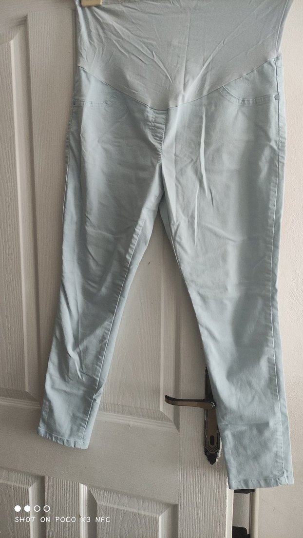 Buz mavisi renkte, kemerli ve rahat kesimli hamile kot pantolonudur. Günlük kullanıma uygundur.