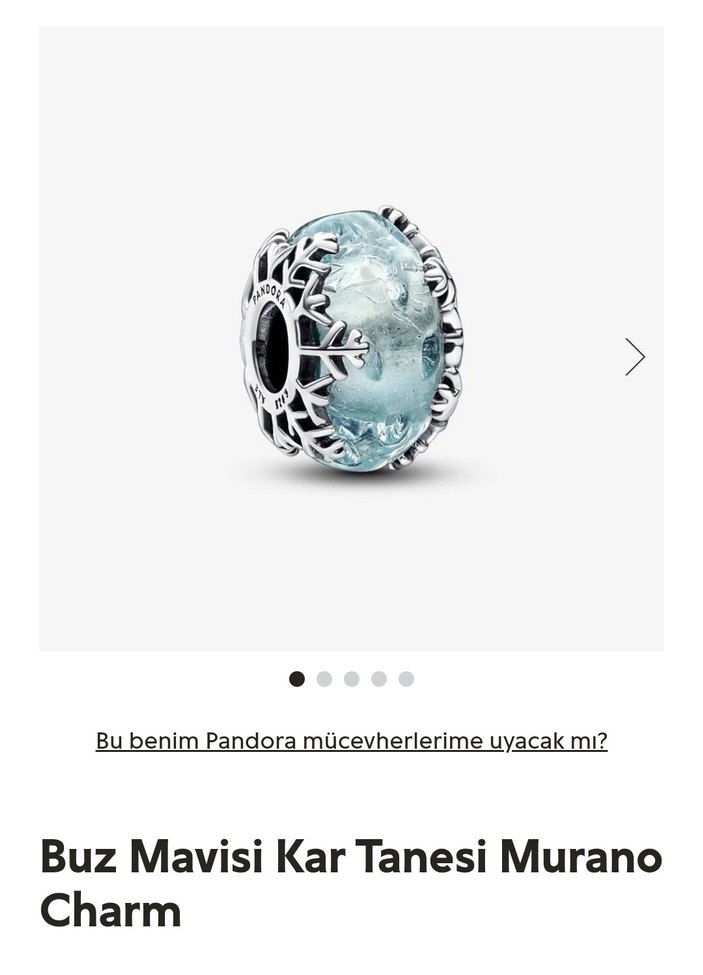 Buz Mavisi Kar Tanesi Murano Charm