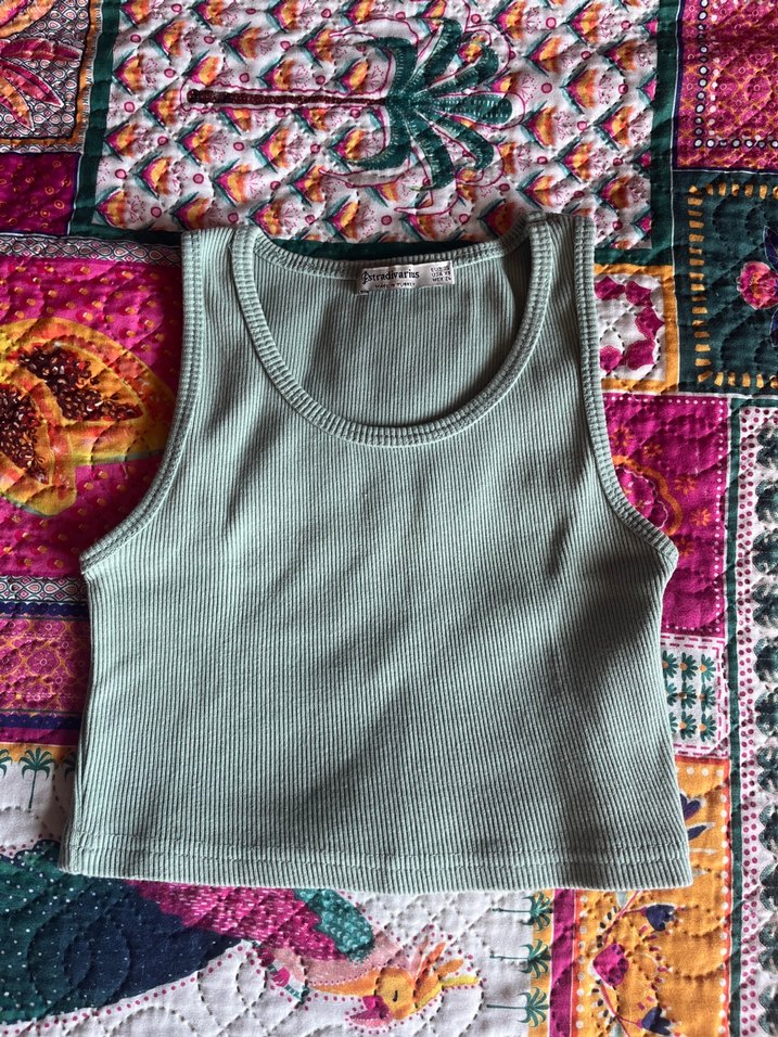 Örgü kumaştan yapılmış, bohem ve retro tarzda, yakası tekne kesim, vücuda oturan kolsuz atlet