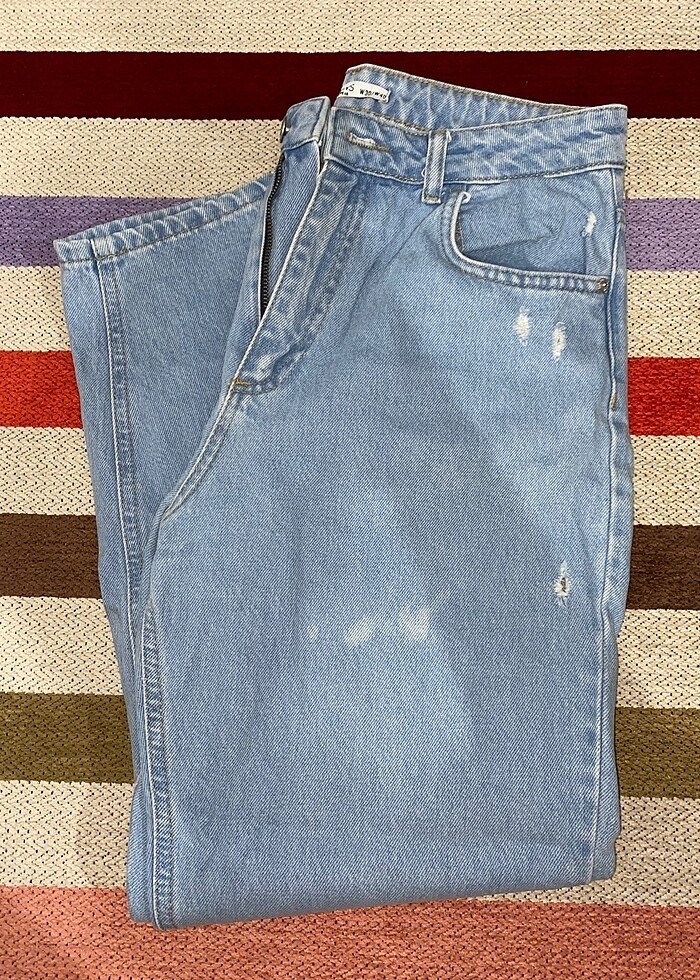 Buz mavisi yırtık desenli kot pantolon. 30-40 beden. Sadece birkaç kez giyildi. Üzerinde hafif bir leke olduğu için fiyatını uygun koydum.