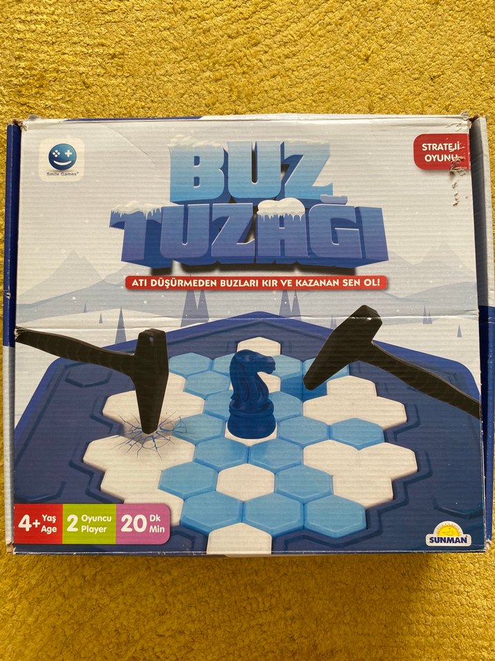 Buz Tuzağı strateji oyununda buz bloklarını kırarak atı devirmemeye çalışın. 4 yaş ve üzeri, 2 oyuncu için uygundur. Kutusu deforme durumda fakat oyun parçaları sağlam ve eksiksizdir #buztuzağı #kutuoyunu #aileoyunu #oyuncak